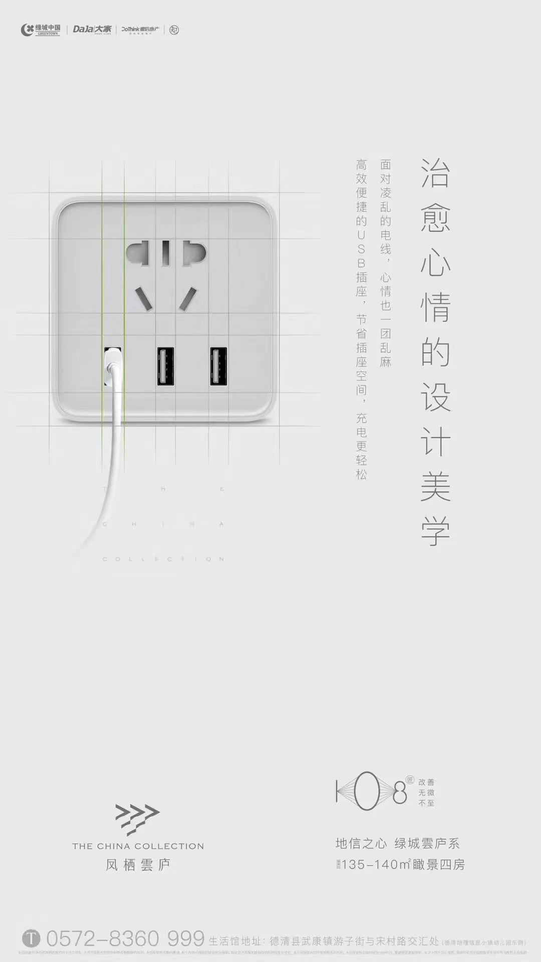 海(hǎi)報(bào)利用(yòng)了(le)人(rén)的( εde)心理(lǐ),像面對(duì)淩亂的(de)電(diàn)線,心↕↔↔情也(yě)一(yī)團亂麻,USB插座,節省插座空(kōn λg)間(jiān),充電(diàn)更輕松。看(kàn)似在宣傳插≥¶£座,實際是(shì)在說(shuō)房(fáng)子(zǐ)精裝,給人± φ(rén)一(yī)種方便、輕松的(de)心理α∞(lǐ)感受吸引客戶的(de)購(gòu)買欲,就(jiù)是(φ'¶shì)不(bù)用(yòng)花(huā)大(dà)量時'¥γ↕(shí)間(jiān)去(qù)購(gòu)買其他(t∑↓ā)大(dà)量的(de)東(dōng)西(•≥xī),直接買房(fáng)一(yī)步到(dào)位。畫(huà)面留出了α§(le)大(dà)量的(de)空(kōng)白(bái)§↕區(qū)域,留白(bái)畫(huà)面會(huì)給♠∏人(rén)一(yī)種高(gāo)級,精緻感。