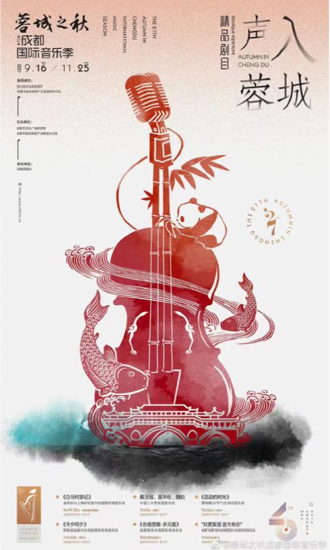樂(yuè)器(qì)采用(yòng)了(le)元素拼湊的(de)§創意方式,用(yòng)竹子(zǐ)拼湊成樂(yuè)器(qì)的(≤ de)琴弦,還(hái)有(yǒu)熊貓、鯉魚、建築®♠§γ等元素的(de)加入,一(yī)方面增加了(∑γ₽le)畫(huà)面的(de)空(kōng)間(jiān)層次感,另一(© yī)方面體(tǐ)現(xiàn)了(le)音(yīn)樂(yuè)會(h ¶uì)舉辦地(dì)的(de)地(dì)域特色,起到(dào)了(le)文(ε∞wén)化(huà)宣傳的(de)作(zuò)用(yòng)。